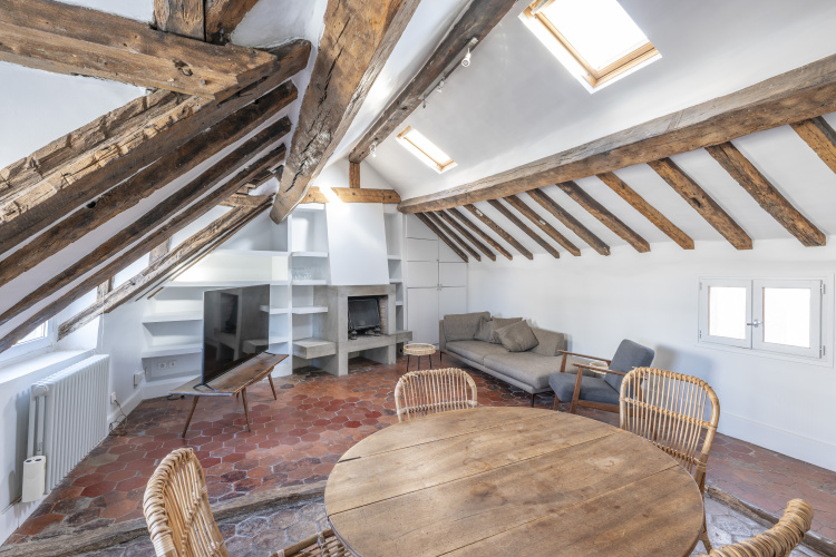 Au cœur du très recherché quartier du Marais, rue de Poitou, découvrez ce magnifique appartement 2 pièces de 54,48 m² (67,26 m² au sol), situé au 6ème et dernier étage d’un immeuble ancien...
